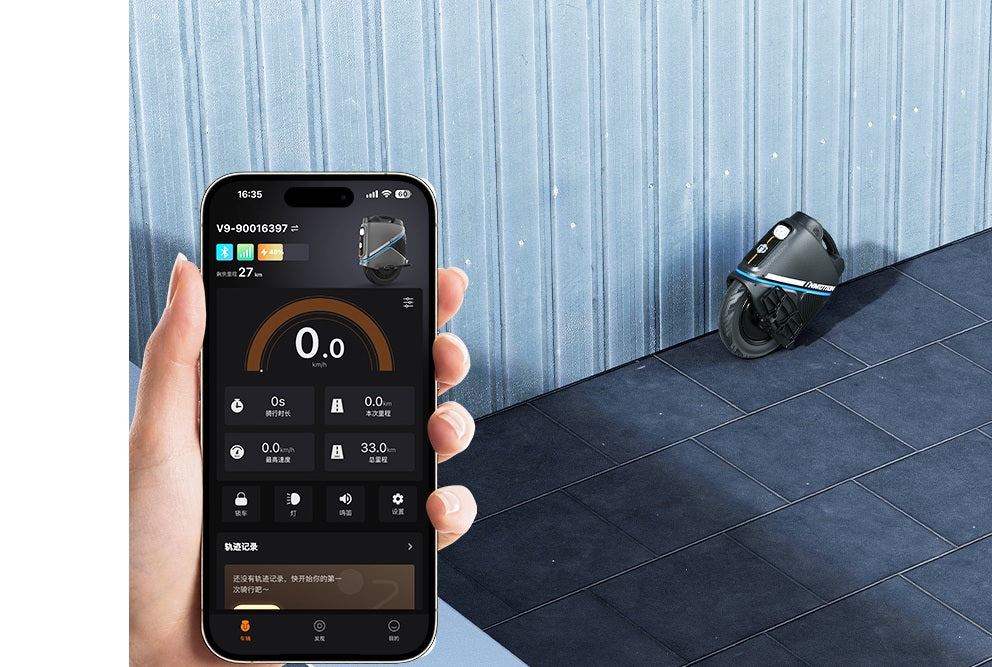 Ar speciālu lietotni uzraugiet riteņu statusu reāllaikā, attālināti bloķējiet vienriteni un bez piepūles izsekojiet tā atrašanās vietu. Pat izslēgtā stāvoklī RideConnect App paliek tiešsaistē, nodrošinot nepārtrauktu aizsardzību.